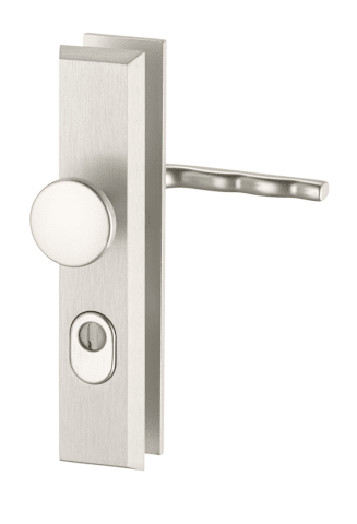 Vollblatt Sicherheits-Wechselgarnitur Alpha 8652,Langschild,ES 1,mit Zylinderabdeckung 92/10,DIN Links-Rechts,neusilberfarben eloxiert,Türstärke65-75,rund/Fingerform gekröpft fest