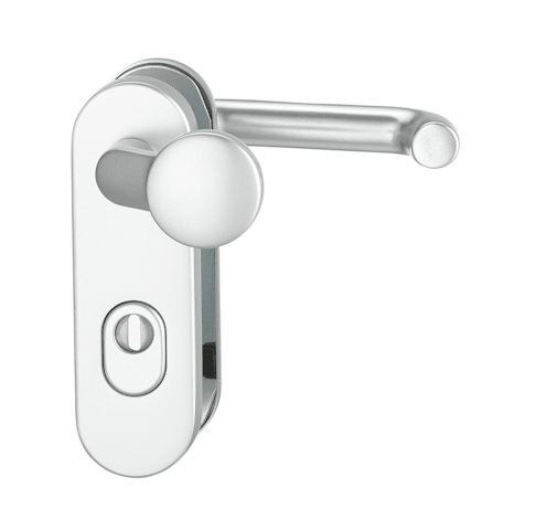 Vollblatt Sicherheits-Wechselgarnitur Logo 8715/1672,Kurzschild,ES 1,mit Zylinderabdeckung 72/8,DIN Links-Rechts,naturfarben eloxiert,Türstärke35-45,gekröpft/U-Form fest