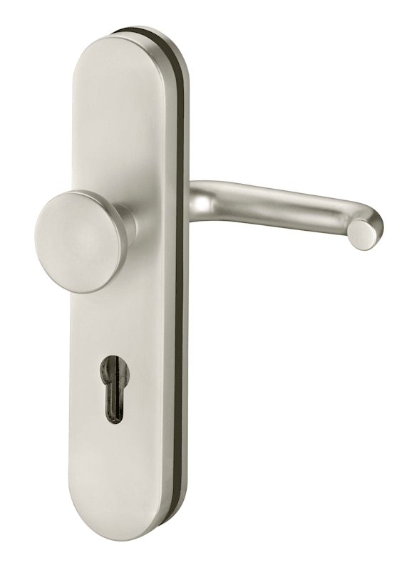 Vollblatt Sicherheits-Wechselgarnitur Logo 8753/0772,Langschild,ES 1,ohne Zylinderabdeckung 72/8,DIN Links-Rechts,neusilberfarben eloxiert,Türstärke35-45,rund/U-Form fest