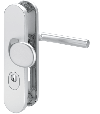 Vollblatt Sicherheits-Wechselgarnitur Europa 8497/0272,Langschild,ES 2,mit Zylinderabdeckung 72/8,DIN Links-Rechts,naturfarben eloxiert,Türstärke35-45,gekröpft/L-Form fest