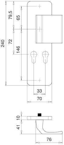 Vollblatt Sicherheits-Wechselgarnitur Twin 8667/9104,Langschild,ohne Zylinderabdeckung 60/108/8,DIN Links-Rechts,naturfarben eloxiert,Türstärke35-45,Griffplatte/U-Form fest