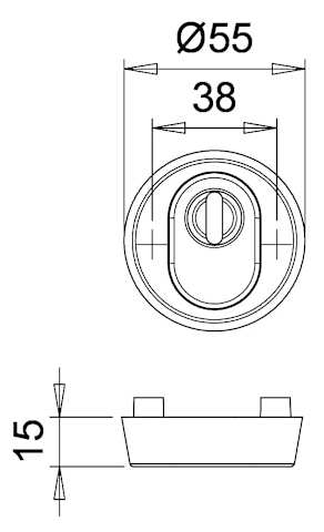 Schutzrosette 7256/2, aufliegend, rund, 15mm, ES 0, mit Zylinderabdeckung/Profilzylinder gelocht, naturfarben eloxiert, Türstärke 65 - 68mm, Durchmesser Rosette (außen) 55mm