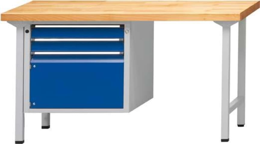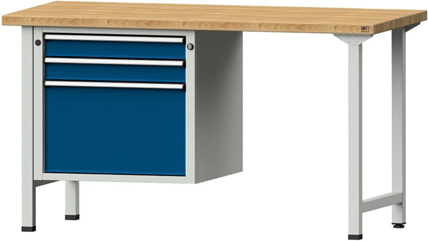 Kombiwerkbank, Serie V, mit 3 Hängeschubladen• Gesamttraglast: 800 kg • Werkbankplatte: Buche massiv, längsseits riegelartig zahnverleimt, Oberfläche geölt • Füße: 4-kant-Stahlrohr, 45/45/2 mm •