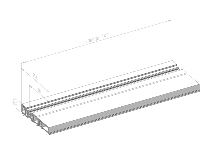 SIEGENIA Aufsatzschiene Eco Pass B182 S106; Ausführung: für Bodenschwelle; Material: Aluminium; Befestigungsart: sichtbar verschraubt; Einsatzbereich: Hebeschiebe; Basis: Aufsatzschiene; Größe: 700; Fensterwerkstoff: Kunststoff,Aluminium; Gesamttiefe: 95,4mm; Gesamthöhe: 19mm; Länge: 7.000mm; Farbton: lichtgrau; Befestigungssystem: zum Anschrauben; DIN-Richtung: left-Rechts