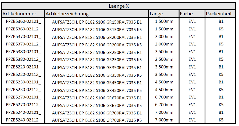 AUFSATZSCH. EP B182 S106 GR700RAL7035 B1 PPZB5240-021011