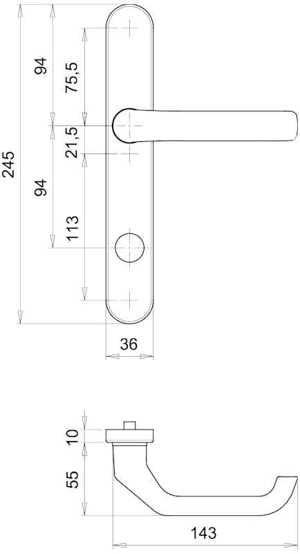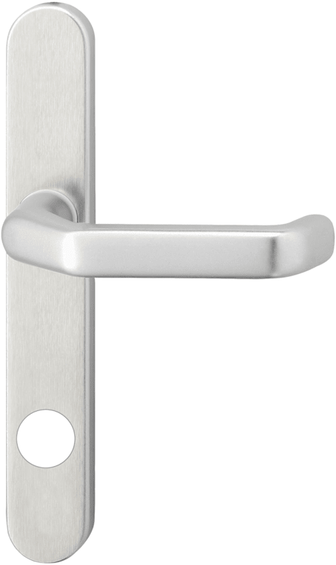 Halbgarnitur Kronos 1200/0155, außen, Langschild oval, Rundzylinder gelocht, Entfernung 94mm, Vierkant 8, DIN Links-Rechts, mit Stütznocken, edelstahl matt, festdrehbar
