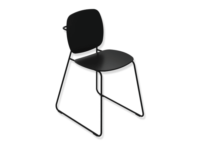 Gestell schwarz tiefmatt pulverbeschichtet, Sitzfläche schwarz matt, Höhe 812 mm, Breite 455 mm, Sitzhöhe 480 mm, Sitzfläche 420 mm breit, belastbar bis 150 kg, Eigengewicht 7,6 kg.