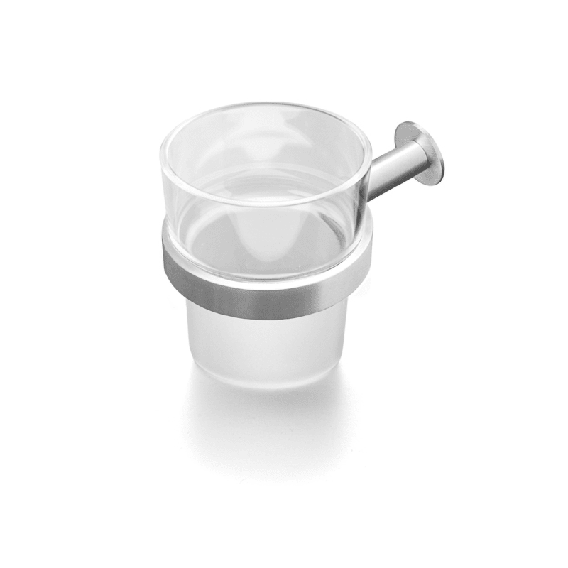 Knud Holscher collection, glass holder, Ø76mm, 116x14mm, w/glass, transparent glass. Manufactured in the highest quality marine grade, AISI 316 stainless steel, protecting against high levels of corro