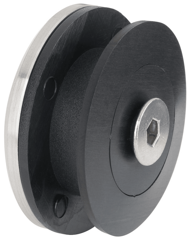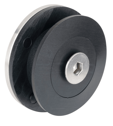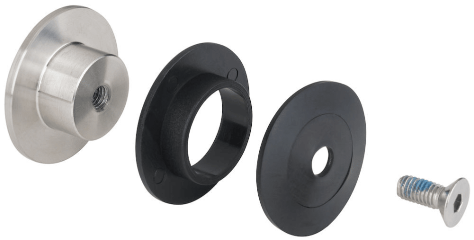 Befestigungsset für San Remo Laufschiene an Glas, für zylindrische Glasbohrung 26 mm, bestehend aus: 6 Einzelbefestigungen, für Laufschiene 2000 mm, Oberfl. F9 (Edelstahlfarben)