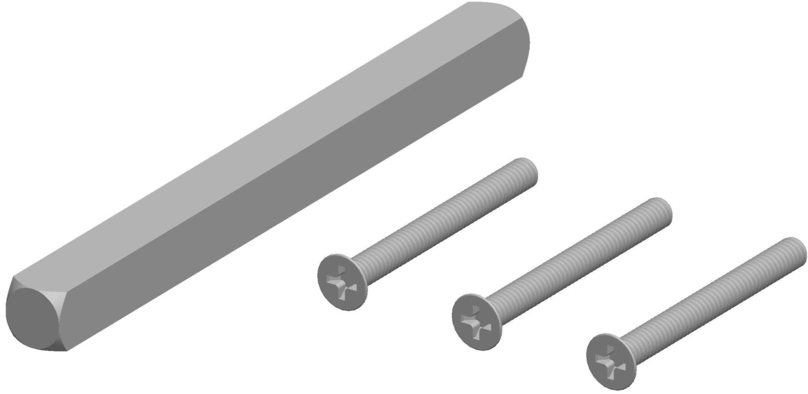 Befestigungsset für Schmalrahmen-Drückergarnitur, passend für Türstärke 79 - 85 mm, 3 Schrauben M6 x 95, 1 Vierkantstift 8 x 145 mm