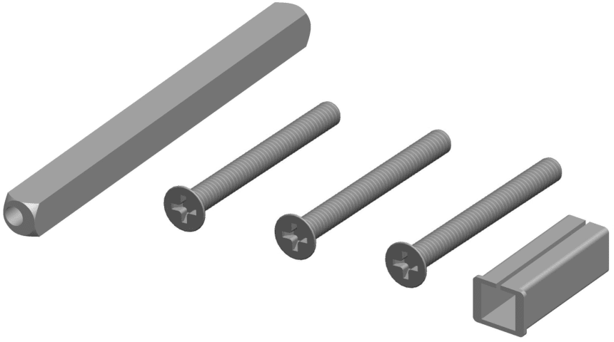 Befestigungsset für Schutz-Drückergarnitur, 2089 - EN 3 - 8 mm Vierkant, für Türstärke 104 - 116 mm, Set à 3 Schrauben inkl. Drückerstift, und Sechskant-Schlüssel