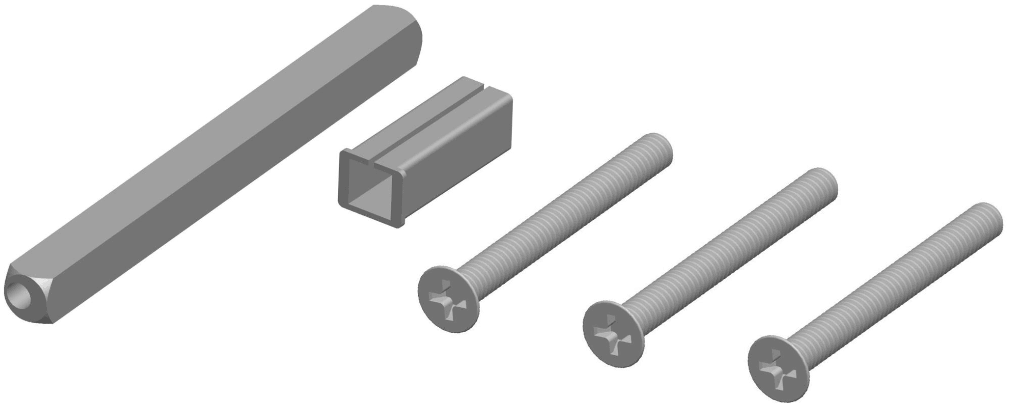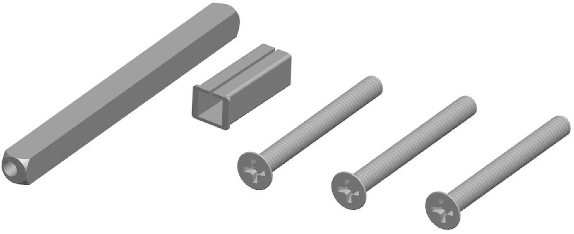 Befestigungsset für Schutz-Drückergarnitur, 2091 / 2092 - 8 mm Vierkant, für Türstärke 67 - 76 mm, Set à 3 Schrauben inkl. Drückerstift, inkl. Verstärkungshülse 8 - 10 mm