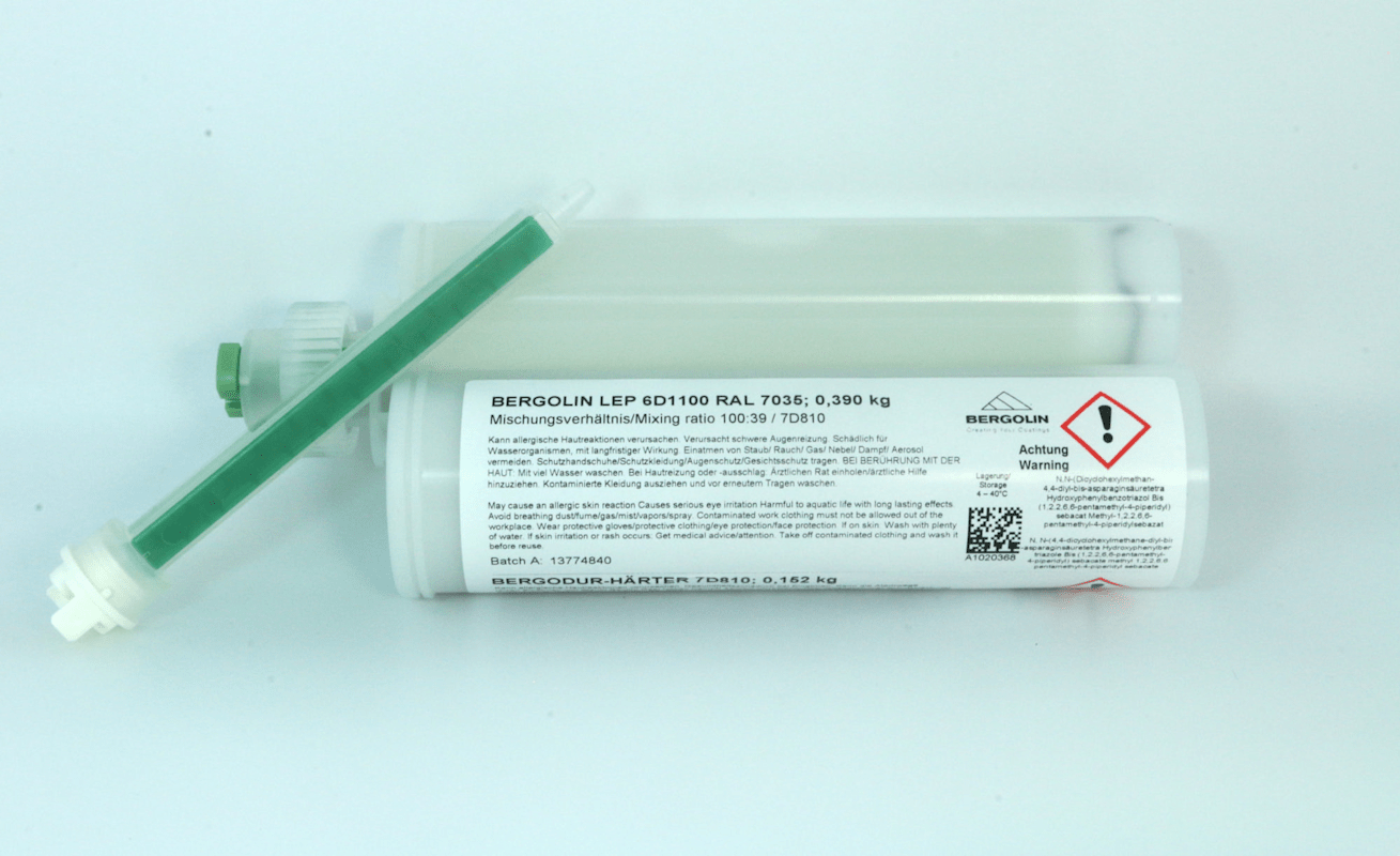 Bergolin LEP 6D1100 mit Härter 7D810 in Lichtgrau (RAL 7035) überzeugt durch seine innovative 2-Schicht-Struktur, bei der die zweite Schicht bereits nach etwa 15 Minuten aufgetragen werden kann. Nach