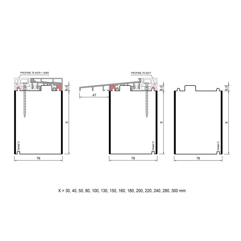 blaugelb Adapterprofil PVC/TK 76x300x4000, PROFINE-76 PROFINE-76