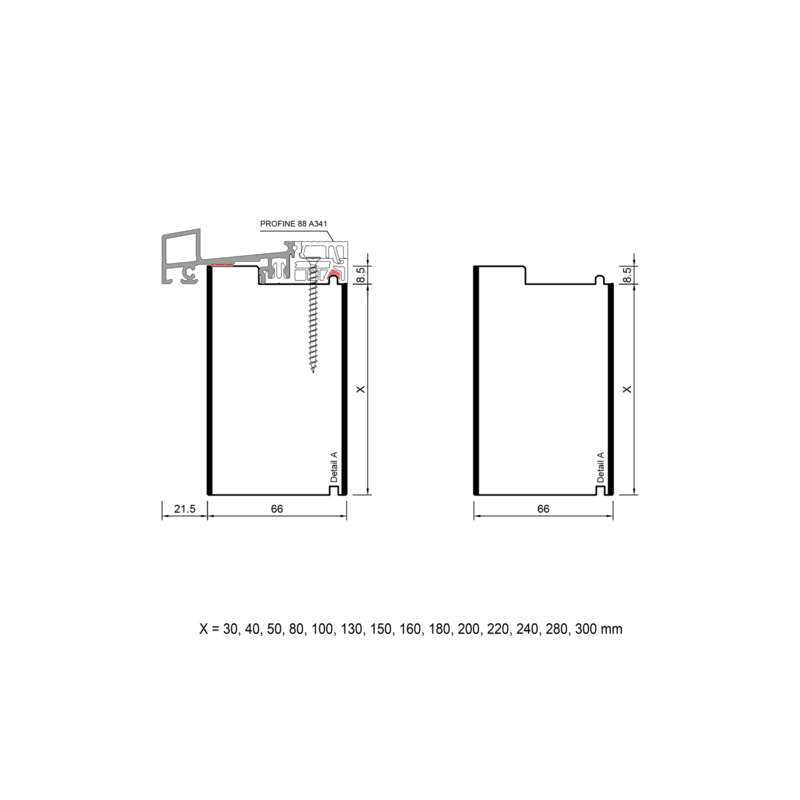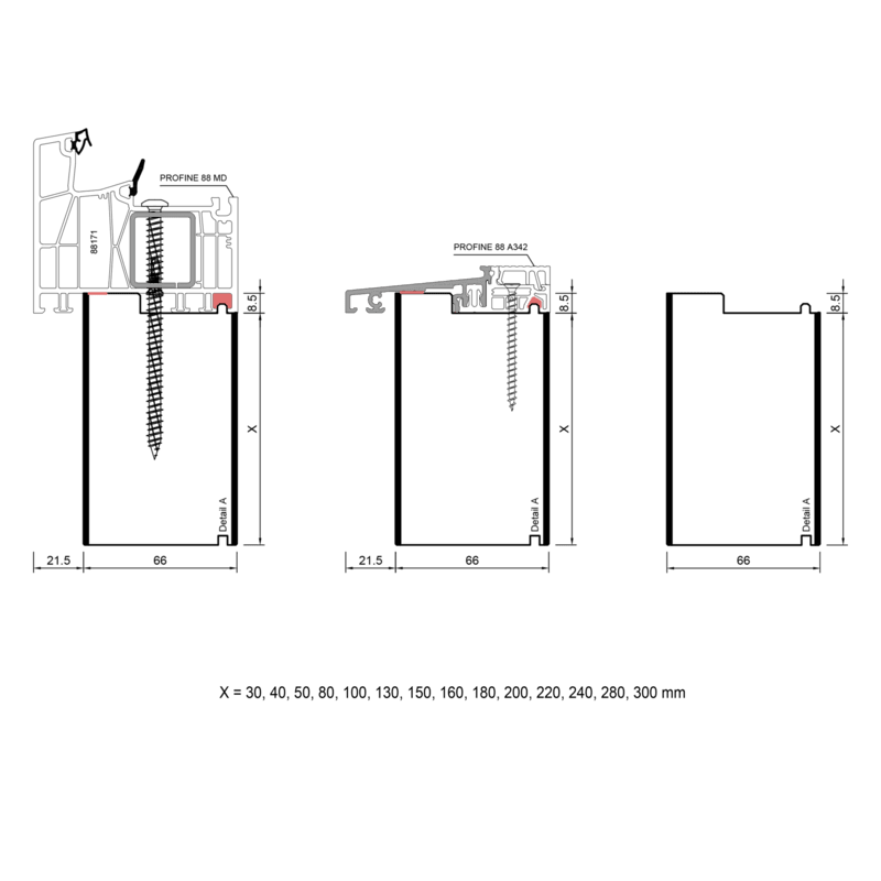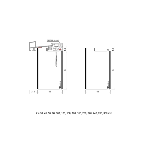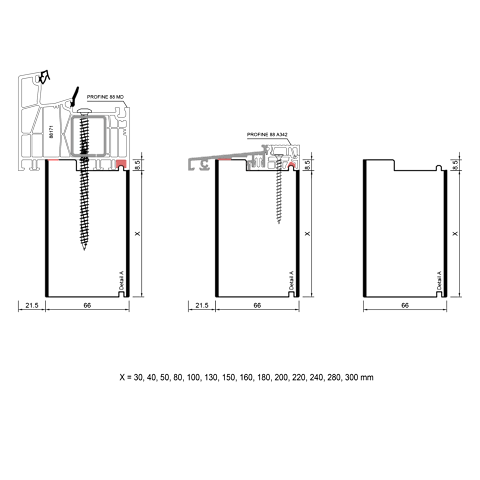 blaugelb Adapterprofil PVC/TK PROFINE T/88 66x200x3000MM PROFINE 88, BAUTIEFE T/88