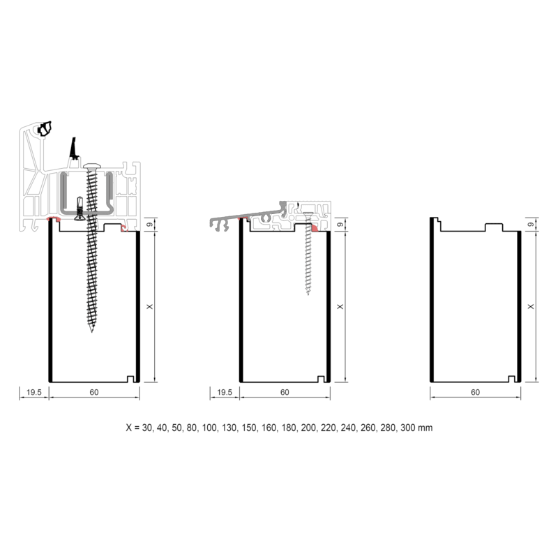 blaugelb Adapterprofil PVC/TK REHAU T/80 60x160x4000 REHAU SYNEGO, ARTEVO BAUTIEFE T/80