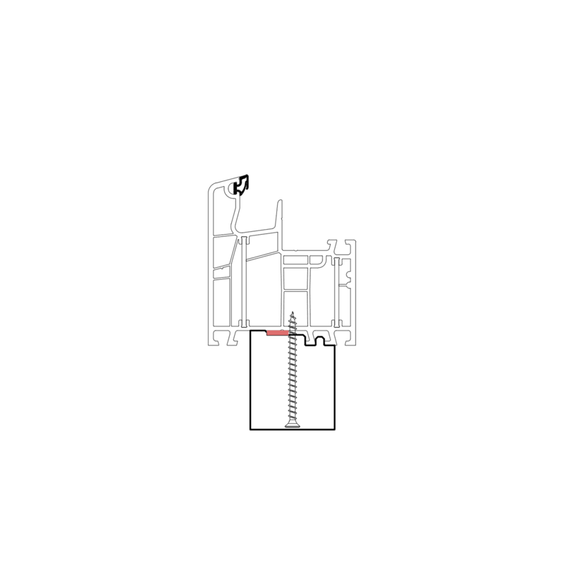 Die konturangepasste Aufnahme gewährleistet eine schnelle und einfache Montage des Profils mit der blaugelb Rahmenfixschraube FK-T30 und eine exakte Positionierung durch die Konturfräsung. Somit entsteht keine Hohlkammer zwischen Bankanschlussprofil und Blendrahmen und durch die prozesssichere Abdichtung wird Luftdichtheit erreicht.