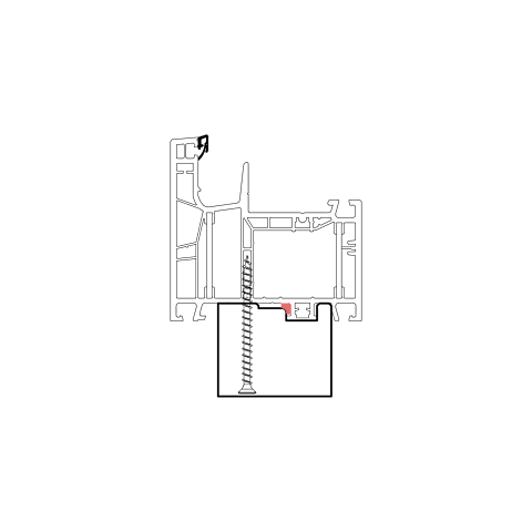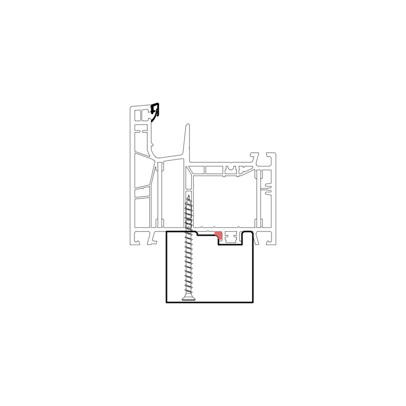 Die konturangepasste Aufnahme gewährleistet eine schnelle und einfache Montage des Profils mit der blaugelb Rahmenfixschraube FK-T30 und eine exakte Positionierung durch die Konturfräsung. Somit entsteht keine Hohlkammer zwischen Bankanschlussprofil und Blendrahmen und durch die prozesssichere Abdichtung wird Luftdichtheit erreicht.