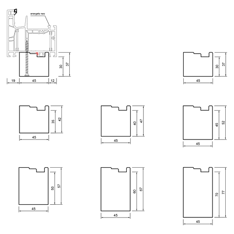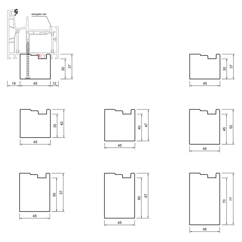 Die profilbezogenen Bankanschlussprofile für Kunststoff-, Holz- oder Aluminiumfenster sind in diversen, unterschiedlichen Formen und Höhen erhältlich.