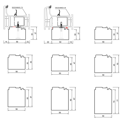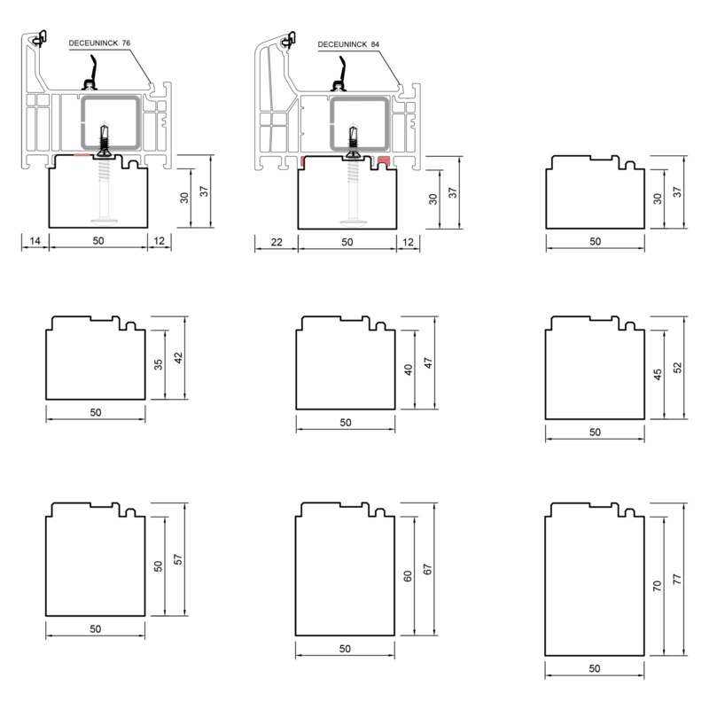 blaugelb Bankanschlussprofil EPS DECEUNINCK T76/84 50x35x1200 DECEUNINCK 76 &84, Bautiefe T/76/84