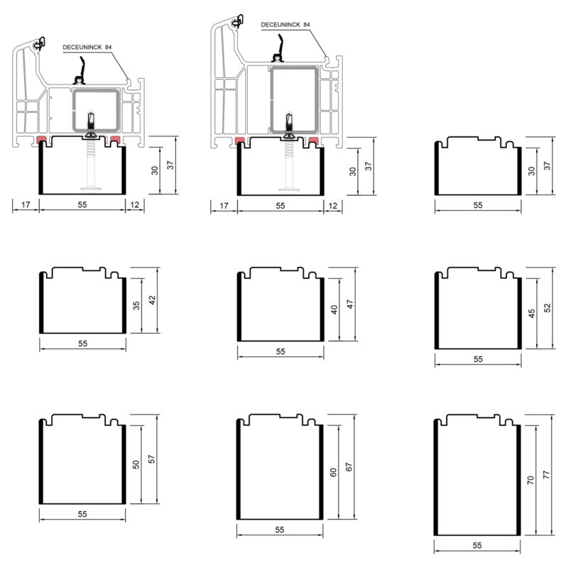 blaugelb Bankanschlussprofil PVC/TK DECEUNINCK T/84 55x30x3000 DECEUNINCK, Bautiefe T/84