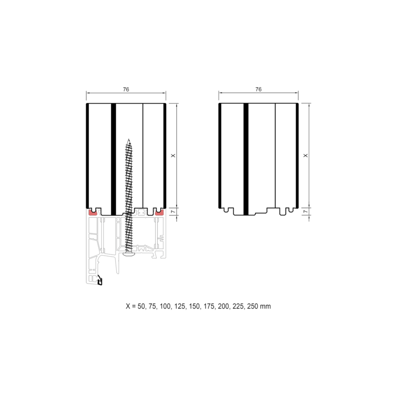 blaugelb Rahmenverbreiterung PVC/TK ALUPLAST 76x100x1500 36DB ENERGETO NEO MD, IDEAL NEO AD, MD T/76