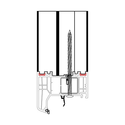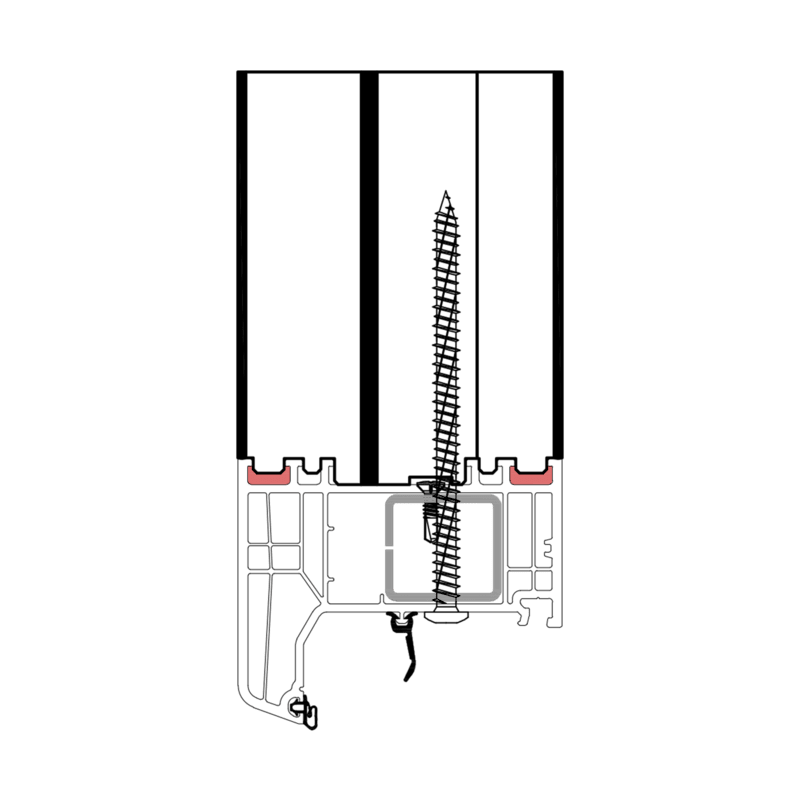 Die konturangepasste Aufnahme gewährleistet eine schnelle und einfache Montage des Profils mit der blaugelb Rahmenfixschraube FK-T30 und eine exakte Positionierung durch die Konturfräsung. Somit entsteht keine Hohlkammer zwischen Bankanschlussprofil und Blendrahmen und durch die prozesssichere Abdichtung wird Luftdichtheit erreicht.