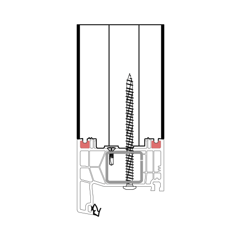 Die konturangepasste Aufnahme gewährleistet eine schnelle und einfache Montage des Profils mit der blaugelb Rahmenfixschraube FK-T30 und eine exakte Positionierung durch die Konturfräsung. Somit entsteht keine Hohlkammer zwischen Bankanschlussprofil und Blendrahmen und durch die prozesssichere Abdichtung wird Luftdichtheit erreicht.