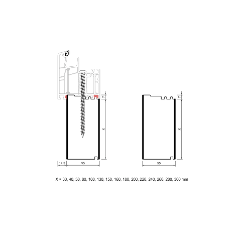 Durch die eingefräste Nut-Feder-Verbindung besteht die Möglichkeit das profilbezogene Sockeldämmprofil PVC/TK mit profilunabhängigen Sockeldämmprofilen zu adaptieren. So haben beide zu verbindende Profile an einem Rand je eine Nut und am anderen Rand je eine Feder und sind untereinander in der Höhe koppelbar. Die konturangepasste Aufnahme gewährleistet eine schnelle und einfache Montage des Profils mit der blaugelb Rahmenfixschraube FK-T30 und eine exakte Positionierung durch die Konturfräsung. Somit entsteht keine Hohlkammer zwischen Bankanschlussprofil und Blendrahmen und durch die prozesssichere Abdichtung wird Luftdichtheit erreicht.