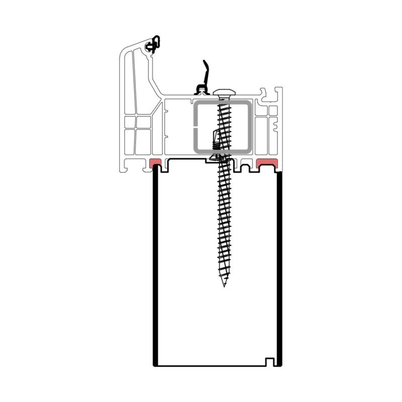 Durch die eingefräste Nut-Feder-Verbindung besteht die Möglichkeit das profilbezogene Sockeldämmprofil PVC/TK mit profilunabhängigen Sockeldämmprofilen zu adaptieren. So haben beide zu verbindende Profile an einem Rand je eine Nut und am anderen Rand je eine Feder und sind untereinander in der Höhe koppelbar. Die konturangepasste Aufnahme gewährleistet eine schnelle und einfache Montage des Profils mit der blaugelb Rahmenfixschraube FK-T30 und eine exakte Positionierung durch die Konturfräsung. Somit entsteht keine Hohlkammer zwischen Bankanschlussprofil und Blendrahmen und durch die prozesssichere Abdichtung wird Luftdichtheit erreicht.