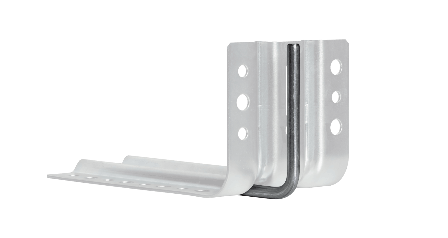 The blaugelb Statik Plus can be used for very high horizontal static requirements due to wind loads and/or for safety-relevant fastening for fall protection or burglary resistance starting from a height of 200 mm. By using the blaugelb Statik Plus, the deformation resistance of the blaugelb mounting angle is increased, thus acting as a statically effective reinforcement.