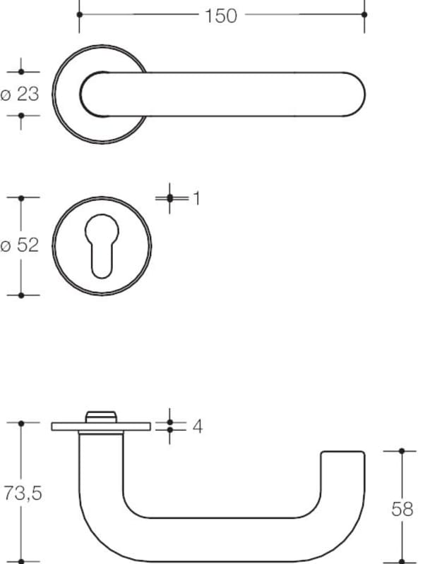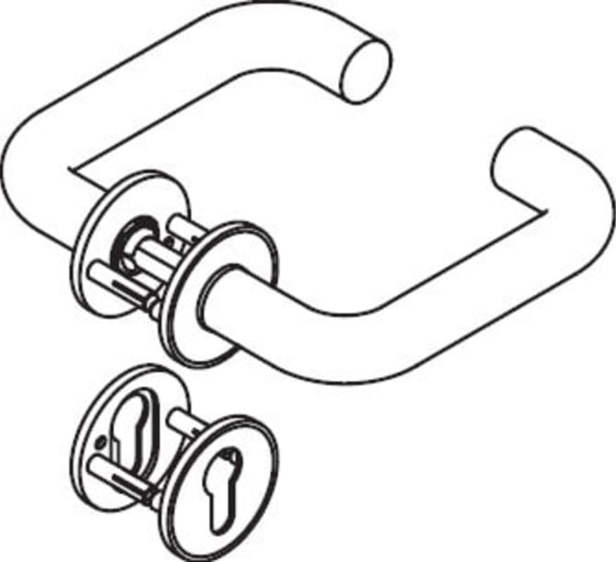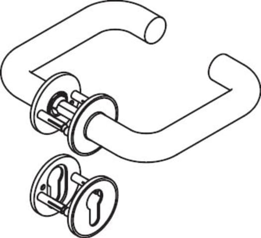Flache Drücker- und Schlüsselrosetten, 306.23XI..., rund, Durchmesser 52 mm, 4,0 mm hoch. Verdeckte, lockerungssichere Verbindung: Drücker und Rosetten sind festdrehbar vormontiert, sowie in das Türblatt eintauchende Stützzapfen. Einfache und schnelle Montage durch Einrasten vormontierter Baugruppen.