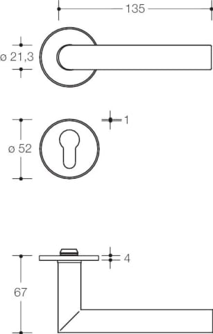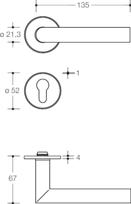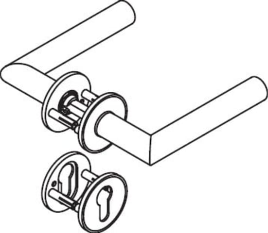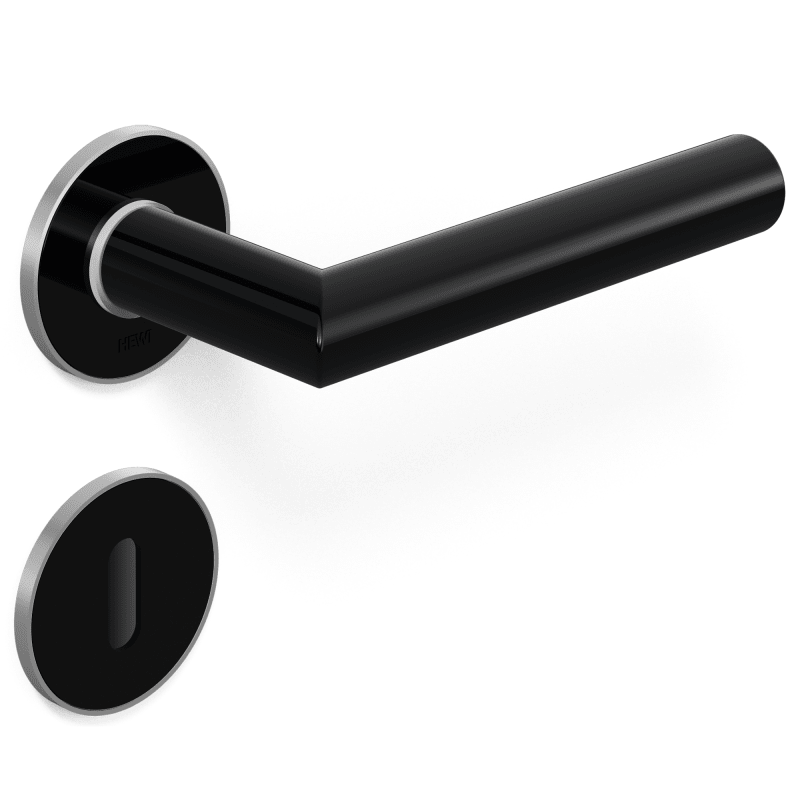 Zimmergarnitur mit Schlüsselrosetten mit flachen Rosetten nach DIN 18255 und DIN EN 1906 und Inlay aus farbigem Polyamid, bestehend aus: Türdrücker Modell 162.21PC in Gehrungsform aus Polyamid hochglänzend, mit durchgehendem Stahlkern bis in das Drückerende, durchgängig eingefärbt, Durchmesser 21,3 mm, mit Ansatzführung und Gewindestift M5 als zusätzliche Fixierung der Türdrücker mit dem Vierkantstift zur optimalen Kraftübertragung in das Türblatt. Flache Drücker- und Schlüsselrosetten, 306.23XI..., rund, Durchmesser 52 mm, 4,0 mm hoch. Verdeckte, lockerungssichere Verbindung: Drücker und Rosetten sind festdrehbar vormontiert, sowie in das Türblatt eintauchende Stützzapfen. Einfache und schnelle Montage durch Einrasten vormontierter Baugruppen. Material der Rosetten Edelstahl (1.4301) matt oder poliert, Rosetteneinleger aus Polyamid hochglänzend Ausgelegt und geprüft für den Objektbereich, Gebrauchskategorie nach DIN EN 1906 - Klasse 4 Dauerhaftigkeit: Klasse 7 Türmasse: keine Klassifizierung festgelegt Feuerbeständigkeit: Klasse 0 Sicherheit: Klasse 0 Korrosionsbeständigkeit Klasse: 4 Einbruchschutz: Klasse 0 Ausführungsart: U Artikel: HEWI 162PCIX01230 0255 0001 Lochung: BB - Buntbart 0261 0003 Vierkant: 8 mm 0286 0005 Türstärke TS3: 38,1 - 48,0 mm 1984 0011 Farbe Inlay bicolor: 90 tiefschwarz 1990 0001 Oberfläche Edelstahl Bicolor: Edelstahl matt FB 90 Farbe: tiefschwarz