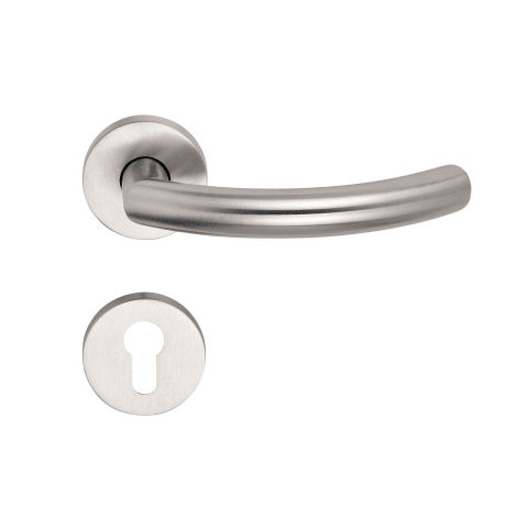 BKS Drücker-Halbgarnitur OFFICE B-70100; Material: Edelstahl; Befestigungsart: verdeckt verschraubt; Befestigungstechnik: mit Stütznocken; Abdeckung: mit Rosetten; Form: rund; Benutzerklasse: Klasse 4
