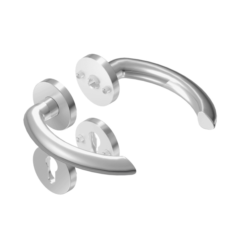 BKS Drückergarnitur LEGATO B-72000; Abdeckung: mit Rosetten; Form: rund; Vierkant: 9 mm; Material: Aluminium; Befestigungsart: verdeckt verschraubt; Befestigungstechnik: mit Stütznocken; Benutzerklass