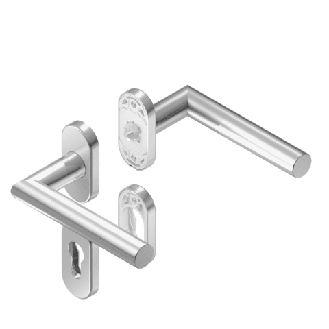 BKS Drückergarnitur BELCANTO B-72030; Abdeckung: mit Rosetten; Form: oval; Vierkant: 9 mm; Material: Edelstahl; Befestigungsart: verdeckt verschraubt; Befestigungstechnik: ohne Stütznocken; Benutzerkl
