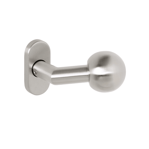 BKS Knopf B-72130; Material: Edelstahl; Befestigungsart: verdeckt verschraubt; Befestigungstechnik: ohne Stütznocken; Abdeckung: auf Rosette; Lagerung: wartungsfrei,festdrehbar; Form: oval; Knopfbreite: 86 mm; Stärke Abdeckung: 9 mm; Einsatzbereich: Feuerhemmend; Basis: Knopf; Zulassung: für Feuerschutz,für Rauchschutz,für Notausgänge; Benutzerklasse: Klasse 4; Knopfdurchmesser: 50 mm; Knopfhöhe: 99 mm; Oberfläche: matt gebürstet; Farbton: edelstahl; Norm: DIN 18273,DIN EN 179,DIN EN 1906; Türart: Rahmentüren,Fluchttüren; Türwerkstoff: Aluminium,Stahl; Türstärke max.: 80 mm; Türstärke min.: 65 mm; Knopfbefestigung: Wechselstift; Breite: 32,7 mm; Länge: 70 mm; Ausführung: mit Kugelknopf K2.1; Knopfform: gekröpft,Kugelform; Vierkant: 9 mm; Befestigungssystem: Stiftverbindung; Eigenschaft: Knopf feststehend