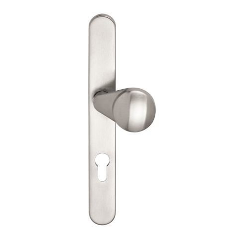 BKS Knopf B-72640; Material: Edelstahl; Befestigungsart: verdeckt verschraubt; Befestigungstechnik: mit Stütznocken; Abdeckung: auf Langschild; Lagerung: festdrehbar,wartungsfrei; Form Abdeckung: oval