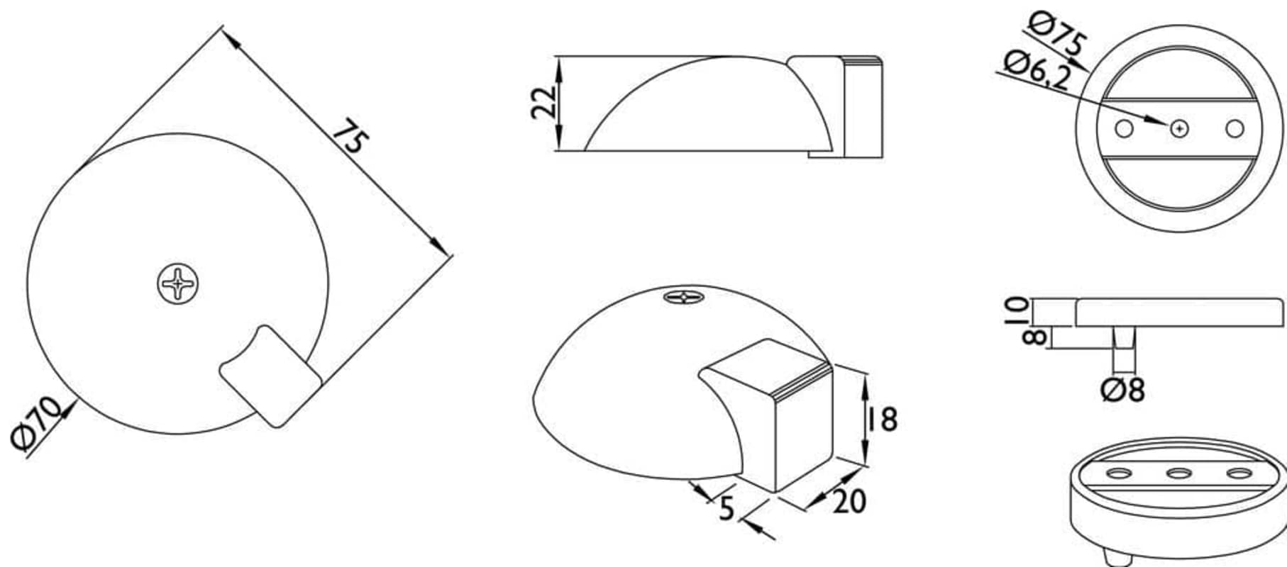 Bodentürstopper 3699 TS, Flachform Ø 70 mm, Höhe 22 mm, mit Holzschraube 6 x 60 mm, Dübel Ø 10 mm, Oberfl. 74 (Classic Black, ähnl. RAL 9005)