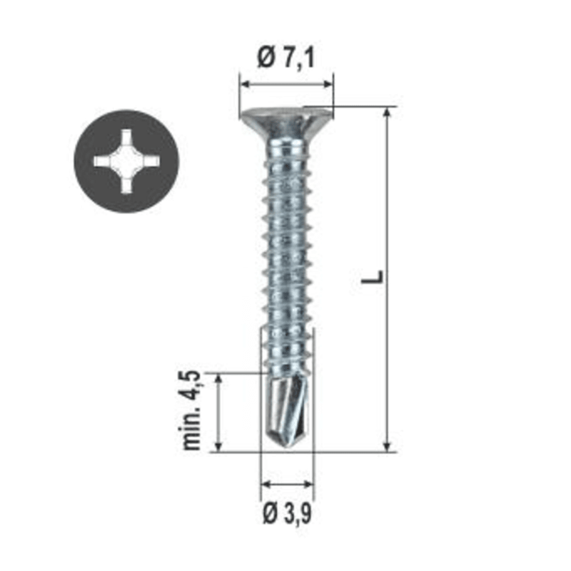 BOHRSCHRAUBE BLAU VERZ. 3112120-3,9-32 ROLLENS KRT=2000 ST.