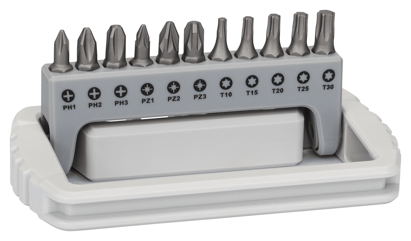 11‑tlg. Extra Hard Kompaktes Schrauberbit-Set mit Bithalter. 11+1‑tlg. Extra Hard Schrauberbit-Set Bits, Länge 25 mm, ISO 1173 C6.3, mit Quick Change-Universalhalter