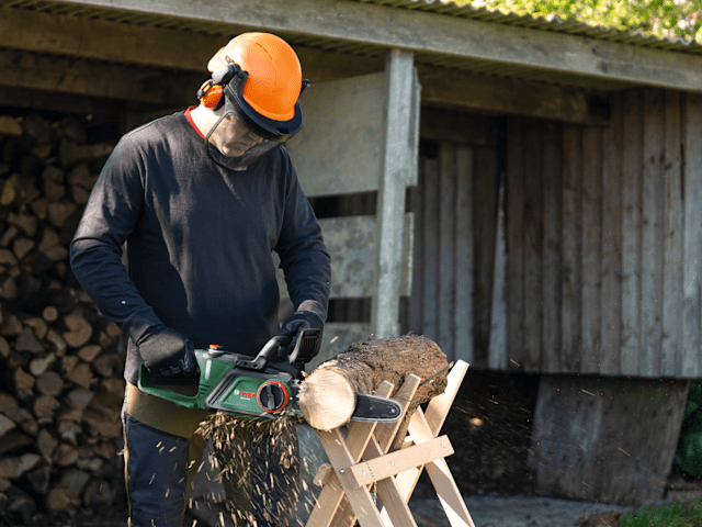Akku-Kettensäge PKE18V-30-28. Vielseitige Akku-Kettensäge für das schnelle und einfache Schneiden von großen Ästen und Stämmen. Gleichmäßiges Schneiden auch bei anspruchsvollen Arbeiten mit der OptiCu