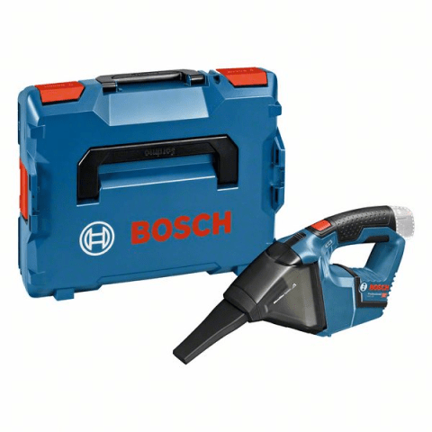 Akku-Sauger GAS 12V, Der GAS 12 V Professional ist Boschs extrem kompakter 12V-Handstaubsauger, ideal zum Trockensaugen. Er bietet kabellose Freiheit beim Reinigen, auch weit entfernt von Steckdosen. Sein extrem kompaktes Design sorgt für uneingeschränkte Beweglichkeit und gutes Handling, er passt für einen bequemen Transport sogar in die kleinste L-BOXX 102. Mit seinem im Lieferumfang enthaltenen Verlängerungsrohr kommt der GAS 12 V Professional problemlos an enge und weiter entfernte Stellen. 1 x Flachfaltenfilter (2 607 432 046); Fugendüse (ET-Nr. 1 600 A00 2PP); L-BOXX 102 (1 600 A01 2FZ); 1/2 L-BOXX-Einlage für GAS 12 V (1 600 A00 3KW); 1/2 L-BOXX-Einlage für Ladegerät und Akku