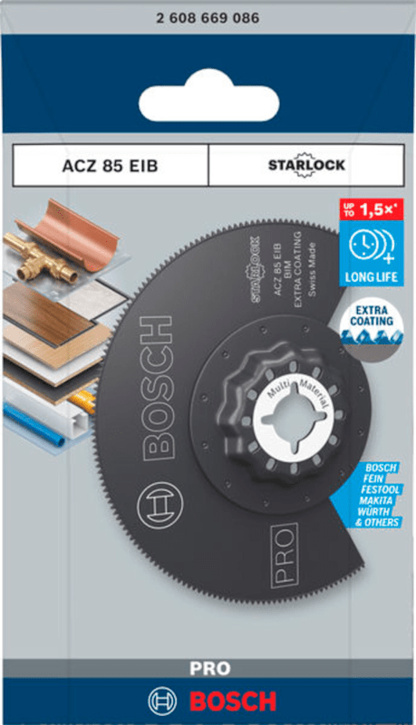 Herausragende Lebensdauer in Holz und weichem Metall! Bi-Metall Blatt: Kombiniert harte Zähne mit flexiblem Blattkörper Das PRO ACZ 85 EIB Segmentsägeblatt ist ein Universalblatt für alle Arten von In