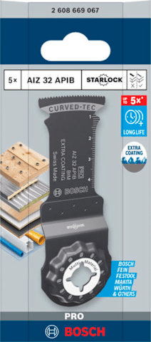 Herausragende Lebensdauer in Holz, weichem Metall und Kunststoff! Bi-Metall Blatt: Kombiniert harte Zähne mit flexiblem Blattkörper Profis, die mit Multifunktionswerkzeugen Tauchschnitte, Bündigschnitte und präzise Ausschnitte ausführen möchten, benötigen ein ebenso vielseitiges Blatt, das diese Aufgaben hervorragend meistert: Das PRO AIZ 32 APIB ist nicht nur in vielen Materialien äußerst leistungsfähig, sondern bietet auch eine hervorragende Lebensdauer. Das PRO AIZ 32 APIB ist ein Tauchsägeblatt aus BI-Metall für Stärke und Ausdauer. Die Zähne sind für zusätzliche Haltbarkeit beschichtet. Durch das Curved-Tec-Design ist die Klinge ideal für ausrissfreie Tauchschnitte.