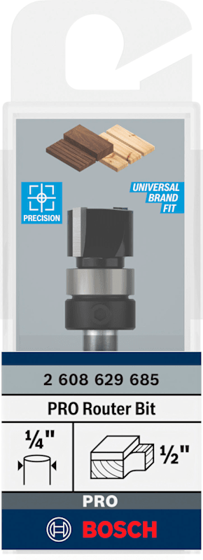 Bosch "PRO Bündigfräser, obenliegendes Führungskugellager, Ø 1/2"" x L 3/8"", Schaft 1/4"""
