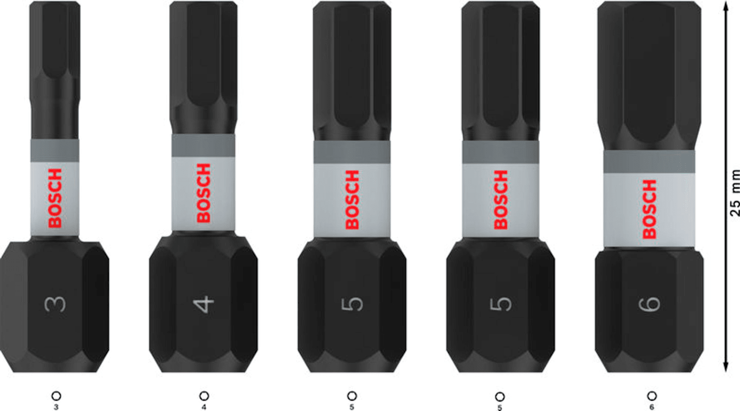 Bosch PRO Hex Impact Bit, H3, H4, H5(x2), H6, 25 mm, 5-tlg.