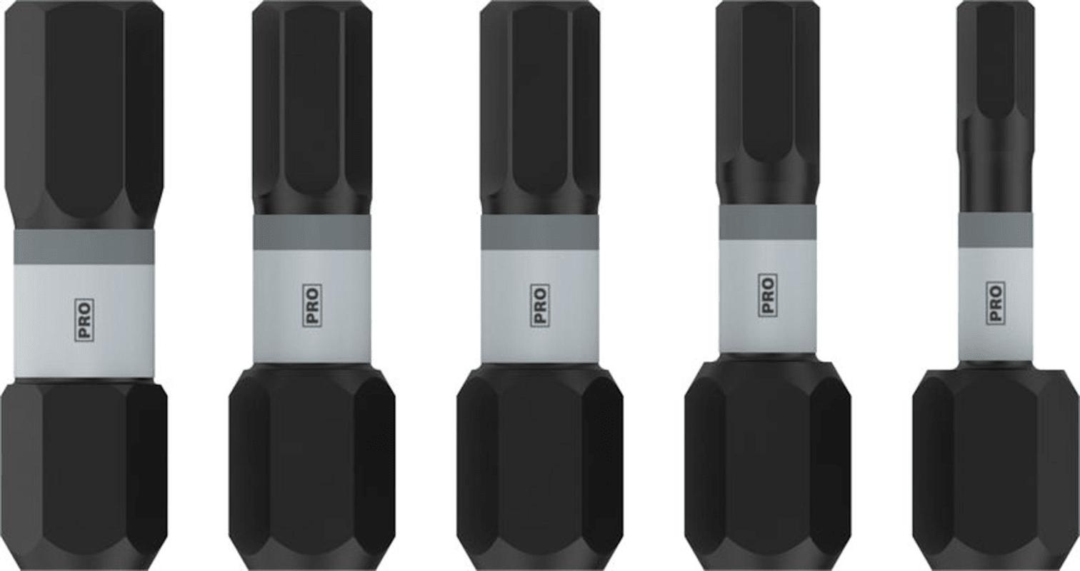 Robustes Eindrehen von Schrauben! Benötigst du Sechskant-Schrauberbits für das Eindrehen von Schrauben? Bits, die lange halten und bei anspruchsvollen Anwendungen gut funktionieren? Dann sind die H Impact Bits die richtige Wahl. Sie sind auf Stärke und Widerstandsfähigkeit gegenüber hohem Drehmoment ausgelegt. Die PRO H Impact Bits sind eine gute Wahl für Installateure, die auf der Suche nach robusten Schrauberbits für harte Einsätze sind. Die Bits bestehen aus wärmebehandeltem, modifiziertem Stahl für hervorragende Stabilität und Widerstandsfähigkeit gegen hohe Drehmomente. Ihre Torsionszone absorbiert die Drehmomentbelastung an der Spitze der Bits, um sicherzustellen, dass sie nicht brechen. Sie verfügen über farbcodierte Ringe, die den Kopftyp anzeigen, und Lasermarkierungen, die dir bei der Auswahl der benötigten Größe helfen.