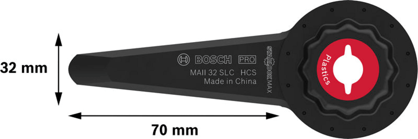 Schnelles Entfernen von Dichtmasse! Extra großes Blatt für Geschwindigkeit und Kraft Früher schnitten Profis die Fugenmasse von Hand aus. Das funktioniert heute viel effizienter. Der PRO MAII 32 SLC Fugenschneider entfernt schnell alte Dichtmasse und ist ideal zum Schneiden von Silikon-Dehnungsfugen oder Gummi. Das PRO MAII 32 SLC ist ein extra großes StarlockMax Blatt. Es bietet die beste Geschwindigkeit und Leistung unter den Blättern für Multifunktionswerkzeuge. Mit der scharfen Messerschneide lässt sich Fugenmasse schnell schneiden. Die scharfe Spitze und die dicke Blattstruktur erleichtern Tauchschnitte in Gummimaterialien.