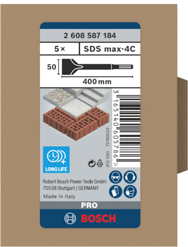 Langlebige Mörtelentfernung! Breite Schnittkante für höhere Materialabtragsrate Bist du Renovierer von Innenräumen und benötigst einen langlebigen Meißel, um Mörtel und Putz von Wänden und Böden zu entfernen? Wir haben den PRO SDS max-5C entwickelt, damit du die Arbeit zuverlässig erledigen kannst. Der PRO SDS max-4C ist ein langlebiger Spatmeißel für Abbruch- und Renovierungsarbeiten. Er verfügt über eine breite Schnittkante für Langlebigkeit. Verwende ihn mit deinem SDS-Bohrhammer, wenn du Putz-, Mörtel-, Gips- und Betonrückstände von Böden bzw. Beton- und Ziegelwänden entfernen musst.